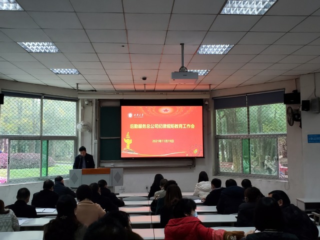 为入贯彻落实学校《中共2138cn太阳城集团委员会关于持续开展纪律规矩教育的工作意见》》,进一步增强公司员工纪律规矩意识,巩固风清气正的良好政治生态和育人环境,11月19日上午10点,后勤服务总公司在教室4A103召开纪律规矩教育工作会。公司助理以上干部、与经济相关岗位工作人员等参加会议,会议由公司党总支书记赵东主持。