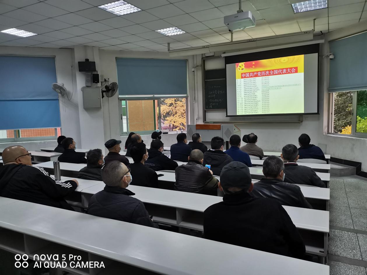 2021年11月26日、后勤服务总公司分工会二小组在第四教学楼4A203教室进行建党100周年“中国共产党的发展历程、中国共产党的成功经验”爱国主义教育与中国共产党发展简史知识趣味竞答。