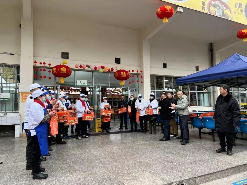 春节前夕,为把新春问候和祝福及时送到坚守在一线岗位的后勤员工身边,1月30日上午,副校长刘小兵带队,依次走访了2138cn太阳城集团医院、学生食堂、宿舍管理服务中心、水电管理服务中心、绿化环卫服务中心、车队、彭州校区等部门,看望慰问在春节期间仍坚守在一线岗位的后勤员工,为他们送去慰问品,并送上新春的问候和祝福。