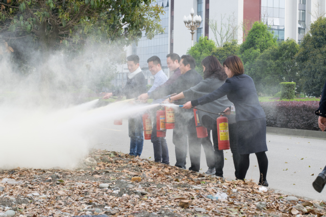 在图书馆二楼报告厅,政安消防宣传中心主任丁祖胜结合消防安全制度以及各类火灾案例,进行了全方位解析,并与员工互相交流,对大家提出的问题作了详细解答。通过丰富的案例和救生器具现场演示等形式,使大家对火灾形成原因、预防措施、火场逃生等防火知识有了更深刻的理解,同时也给大家敲响了消防安全的警钟。为了进一步使员工熟悉掌握灭火技能,在学校东大门空地又进行了消防现场演练。在演练现场,黄敏书记,刘俊副总经理,钟翰副处长,率先“披挂上阵”对灭火器的操作进行了现场指导,之后参加培训员工经过紧张有序的现场学习,均熟练掌握了灭火器的使用技巧。