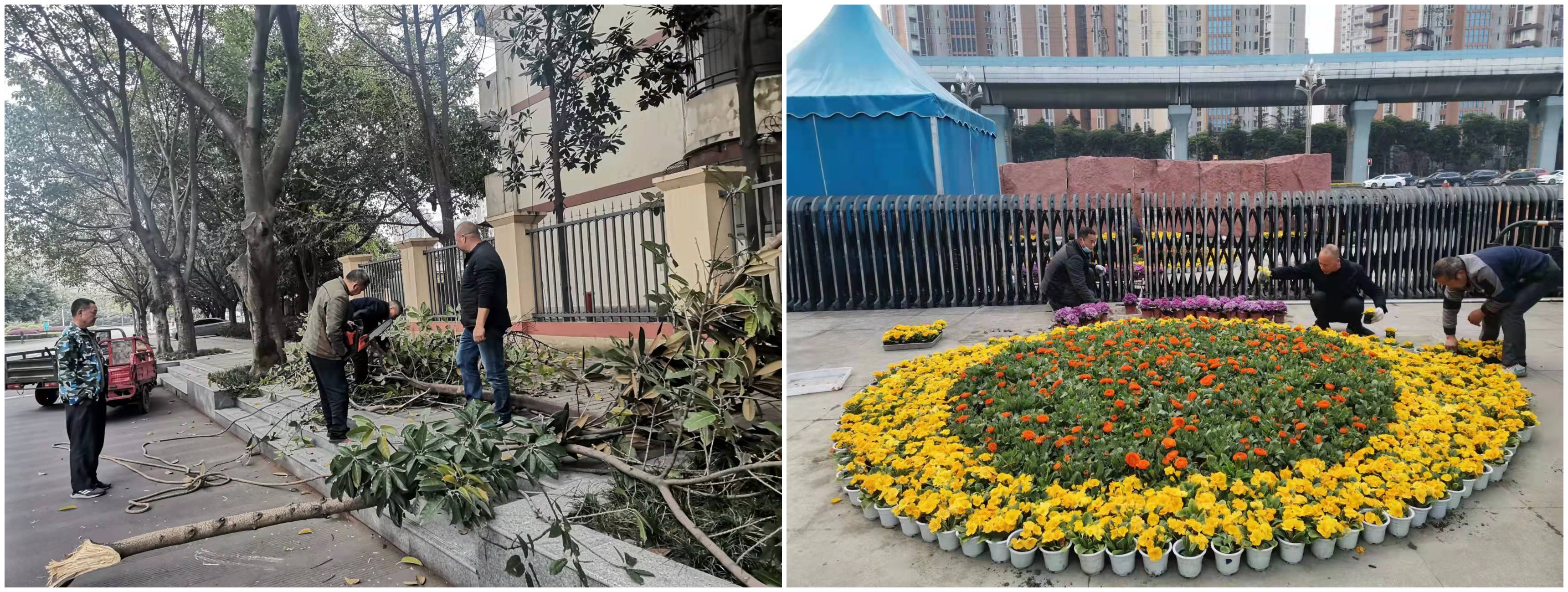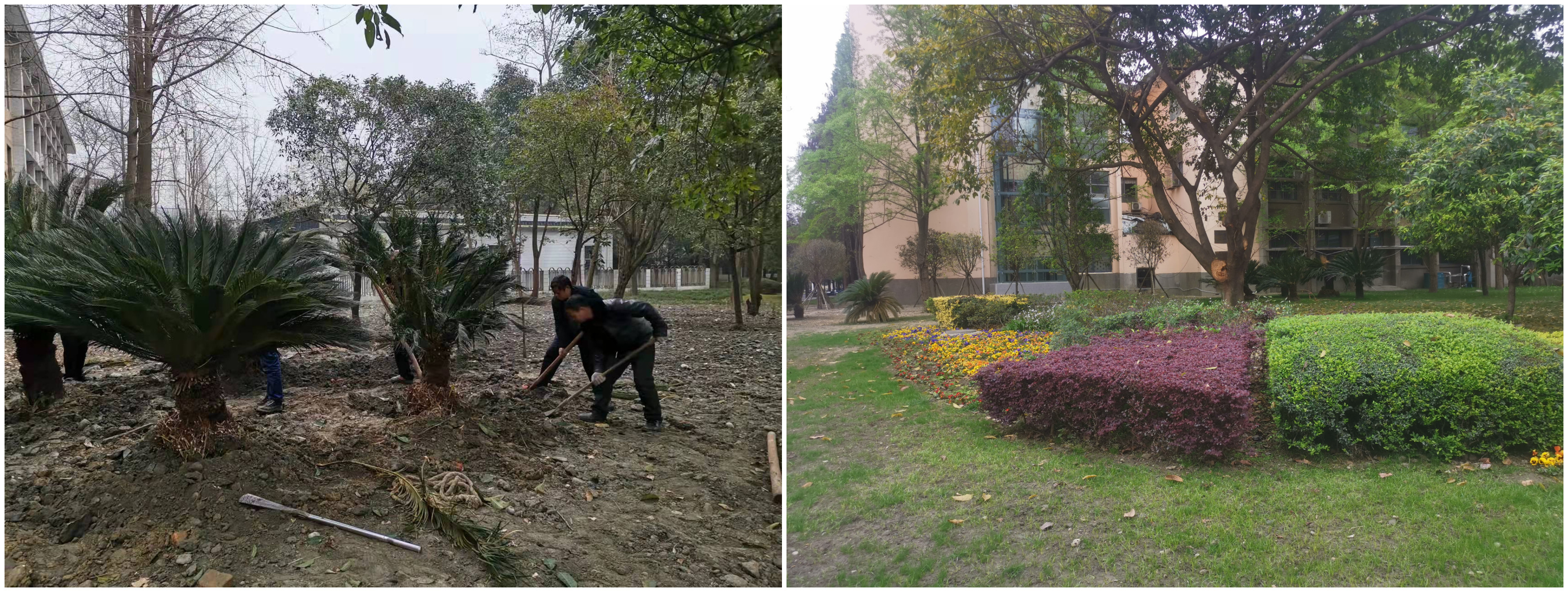 精细化养护绿植。春意盎然,万物复苏,春季是校园绿化工作的关键时期,中心通过修剪植物、适当浇灌、喷洒农药等措施,有效解决了枯枝断木、植物发病、阔叶杂草等问题,同时,中心在一教周围移栽树木及绿篱,种植鲜花,播撒草种,将旧式绿地改造成为层次分明、色彩多样的绿化新貌,为美丽的西华校园增添了许多春色。