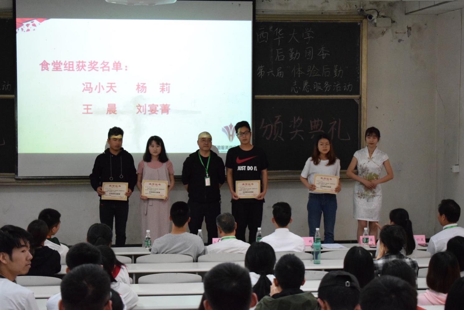4月20日中午,“体验后勤”志愿服务活动颁奖大会在4A-104教室举行。会上,西华物业服务中心主任金仁友致辞,号召同学们用有限的青春投入到无限的志愿服务活动中去。随后,张鹤、李晓英、熊江、令狐昌茂老师为优秀志愿者颁发了证书。志愿者代表欧泽丽发表获奖感言,表示在此次活动中切身体会到了后勤人的辛苦,今后将对后勤工作者报以更多的理解与尊重。最后,后勤团委学生副书记包世丽对此次“体验后勤”活动进行了总结。