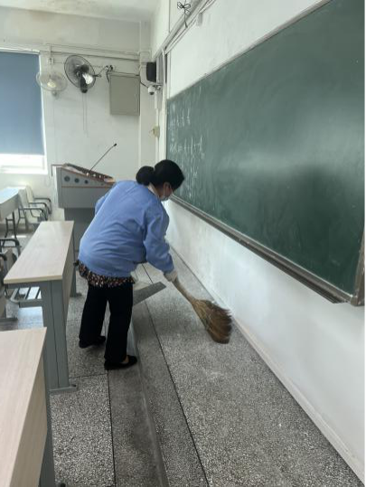 在检查过程中,针对各教学楼多媒体讲台、黑板、厕所卫生进行了重点检查,要求保洁人员均需按照中心保洁工作流程及制度严格执行和落实,并当即对不符合要求的卫生情况提出整改建议,鼓励员工严格按照高要求、高标准开展工作,保障师生学习、工作环境干净整洁,教学工作正常有序进行。