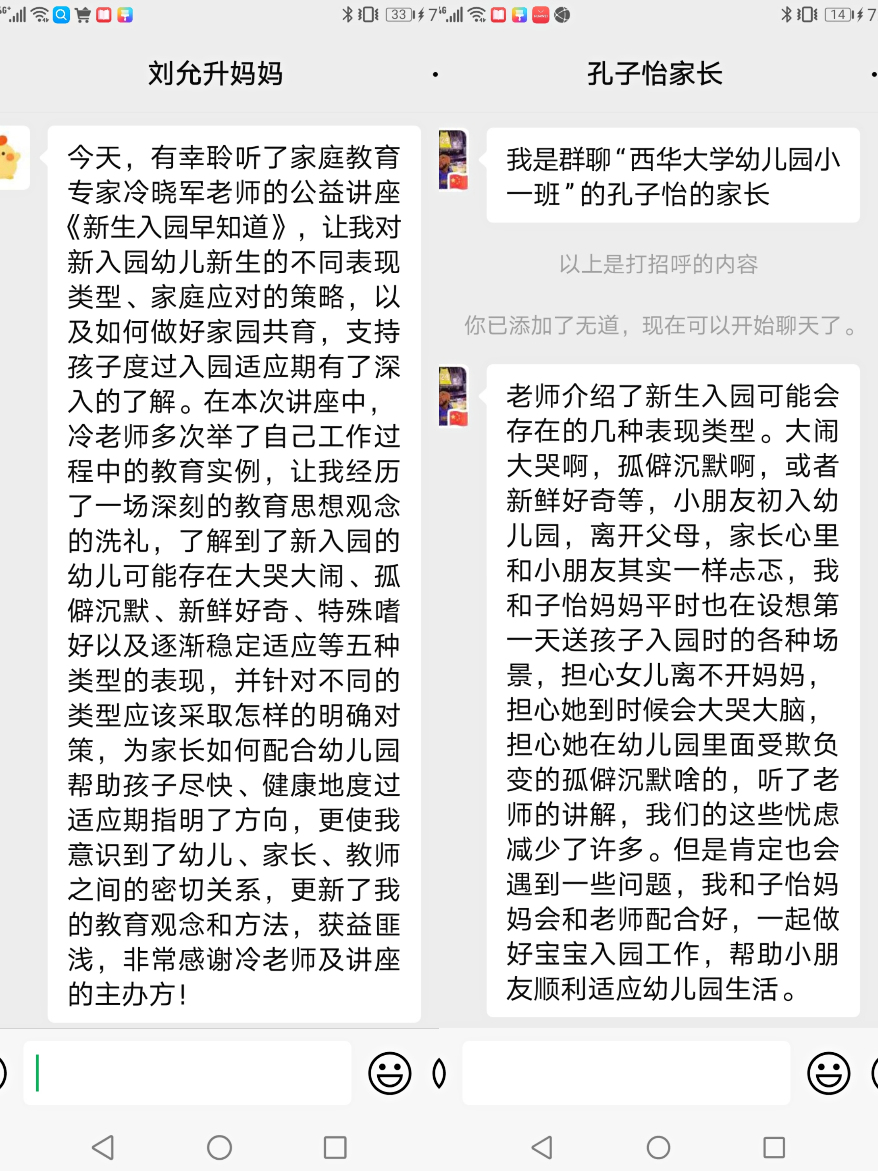 讲座结束后,冷老师与在评论区留言的家长交流互动、支招解惑,会场气氛比三伏天的高温还要火爆!家长们纷纷表示,听了冷老师的讲座受益匪浅!让大家对于新生幼儿入园可能面临的困难及不同表现,有了一个比较全面的了解,知道如何去应对了。幼儿教育只依靠老师和幼儿园单方面的努力是不行的,家长的配合和支持必不可少!只有家园密切配合,才能最大发挥教育的力量。作为家长,应该选择相信老师,也要学会相信孩子,保持良好的心态,帮助孩子安然渡过入园焦虑期,早日适应新的学习、生活环境,顺利开启人生的另一段崭新旅程。(高冰撰稿)