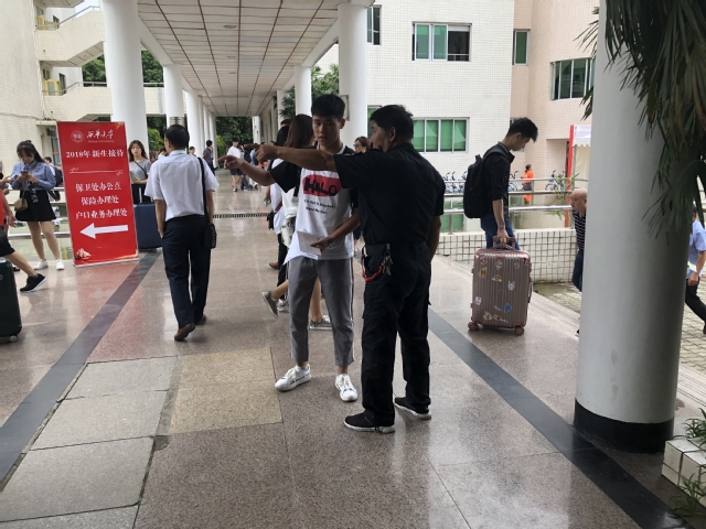 迎新专区的秩序队员俨然成了“指路叔叔”,在迎新现场看到秩序队员每隔3--5分钟就会有学生或者家长前来询问。有问路的,有问教室的,有问厕所的.........3教当值队员郭延敏说:“我从早上到现在嘴巴都没停歇过,一直在给同学和家长指路,忙得还没来得及喝水呢!不过能够帮到忙我就很高兴”郭师傅朴实的话语犹如他额头爬满的皱纹,让人听着特别踏实和信任。作为一名普通的后勤物业工作人员,岗位虽平凡但是他却在工作中体会到乐趣和快乐,真心为他感到骄傲和开心!(马恒撰稿)