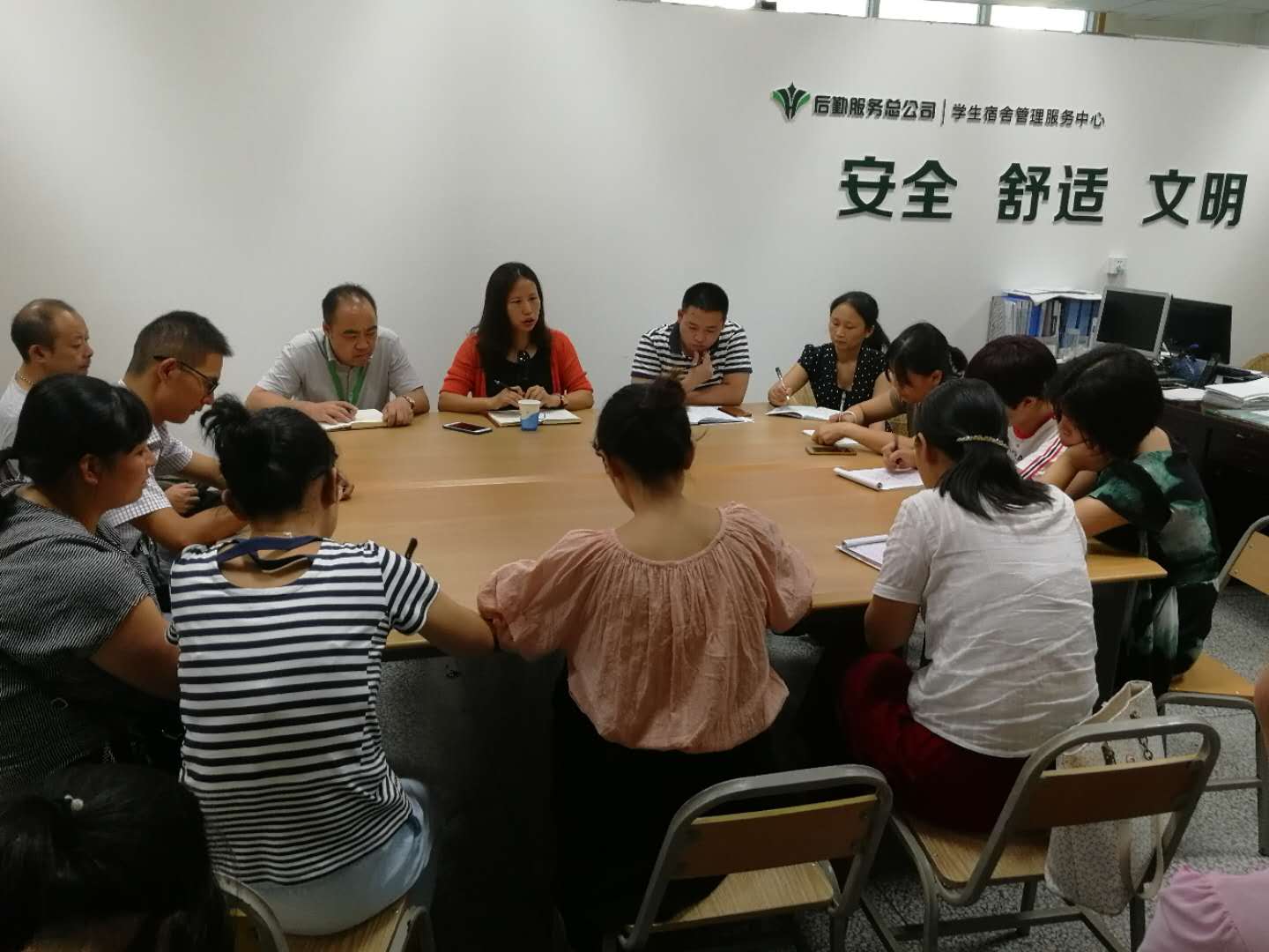 为安全有序高效做好迎新工作,9月3日,宿管中心召开全体管理人员工作会,宿管中心主任梁开均、副主任柯希枝对6、7号的迎新工作进行了全面安排部署。总公司副书记黄敏在会上强调安全第一,要绷紧安全的弦,紧抓安全不放松;要增强员工服务意识,以服务提升家长、学生的满意度;要注重细节管理,营造温馨、舒适、文明、和谐的宿舍环境。同时黄敏和中心主任深入各个苑区检查迎新准备工作,肯定了各园区在假期所做的各项工作,同时也希望大家继续努力,做好最后的检查工作,为新生圆满入住提供各项便利和保障。