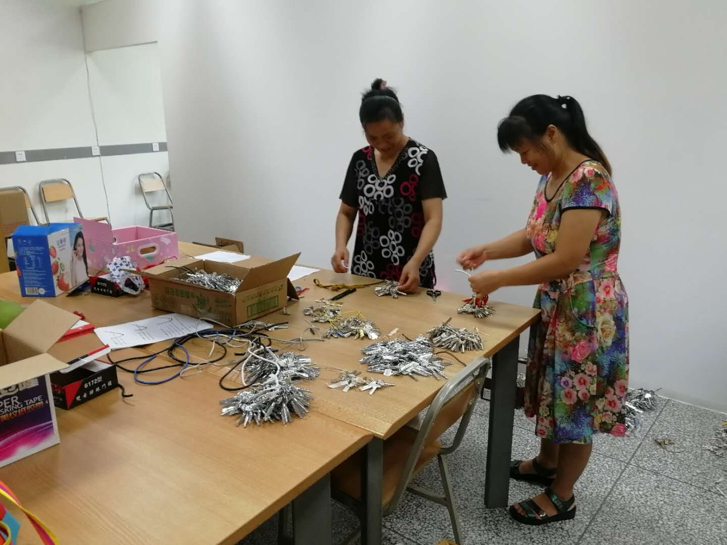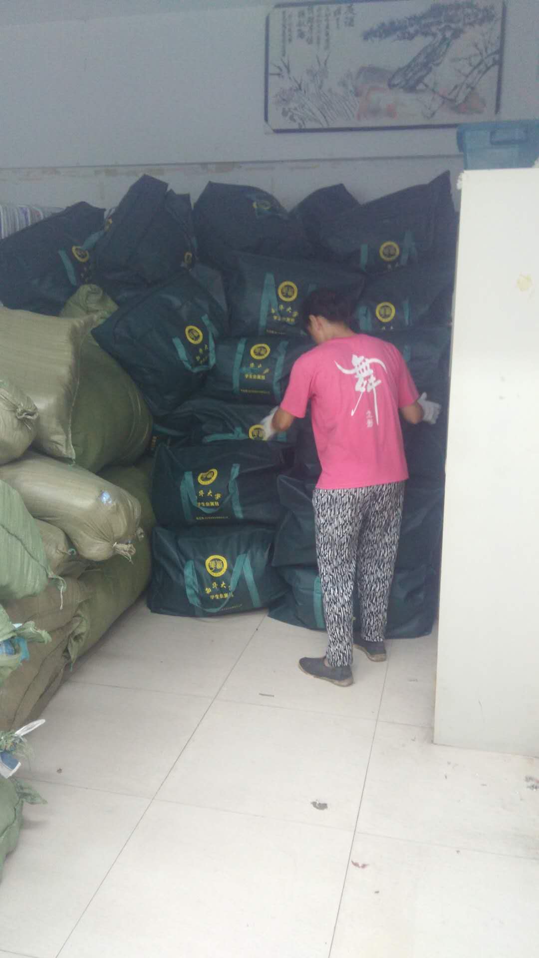 工作人员在假期中对2000余间空寝室全部更换锁芯,中心将钥匙以学院为单位及时分发到各学院。迎新前夕,中心组织人员分苑区对学生卧具包进行分包装包,确保开学期间学生能及时购买到卧具等生活必需品。