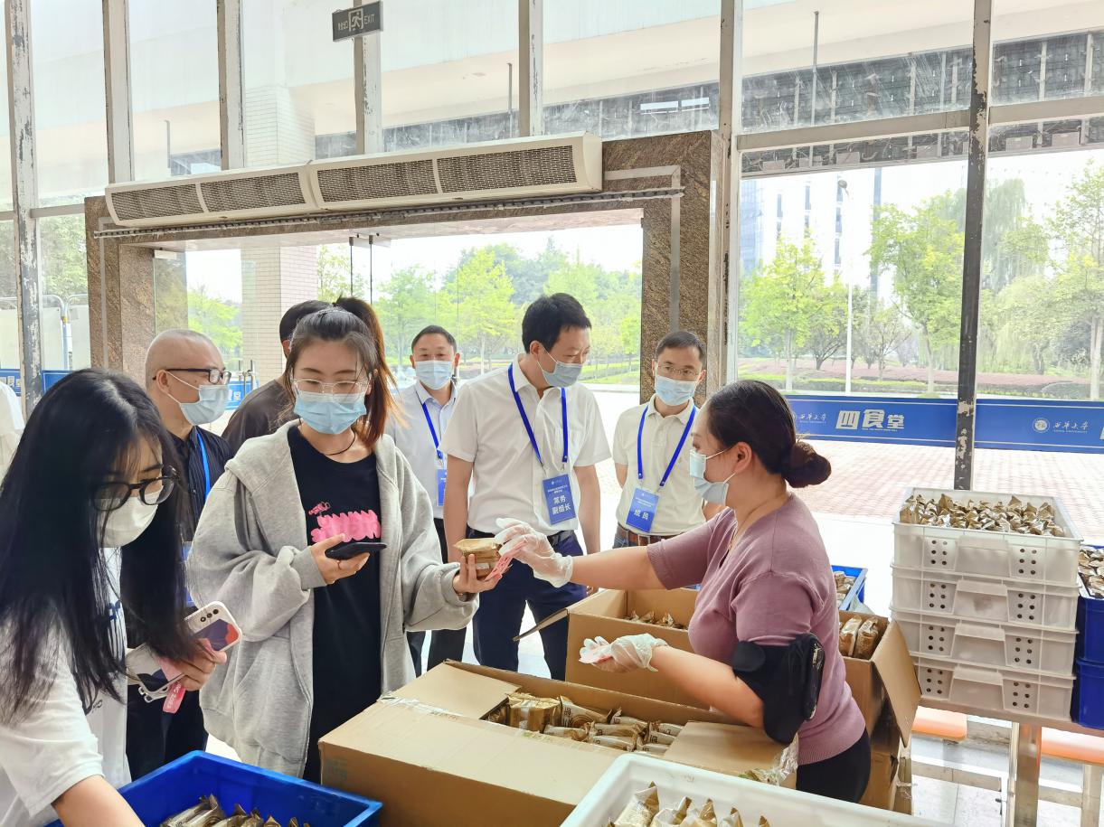 中午11:40,刘树根校长一行来到学生三食堂,刘校长查看了后勤物资供应、饭菜品种等情况,与同学们亲切交谈,关心同学们在校学生生活情况,并代表学校向在校师生致以节日的祝福,希望同学们做好个人疫情防护,安心在学校里学习生活,实现人生追求和理想。