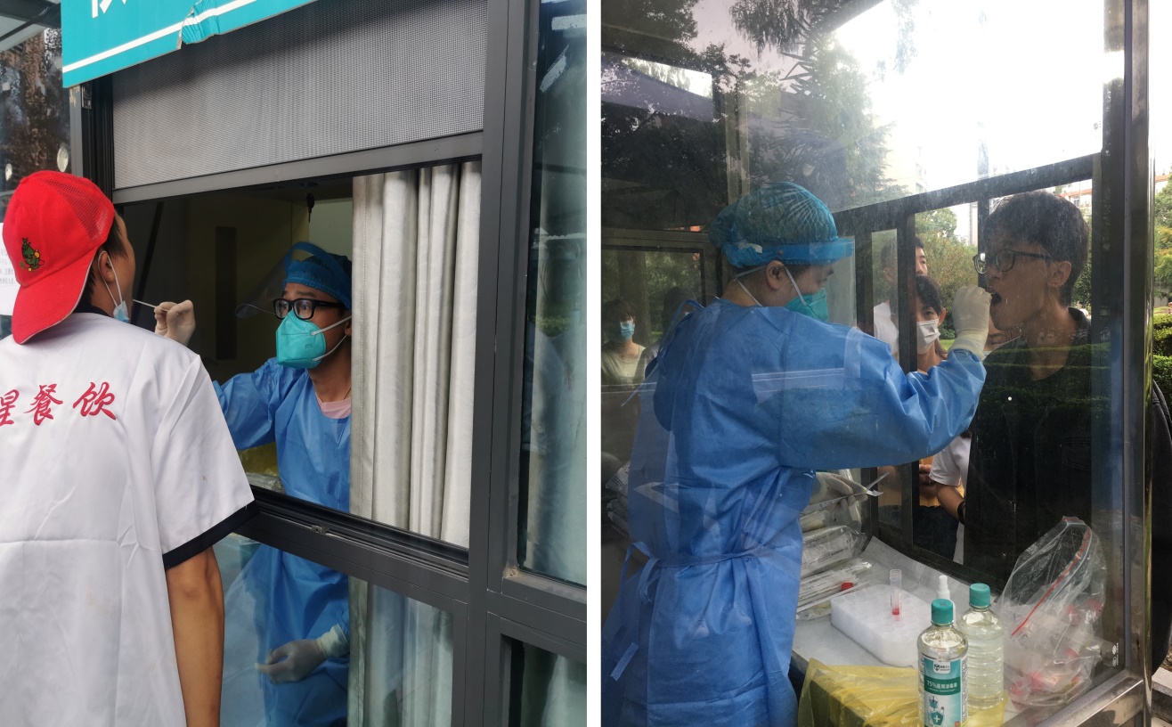 骨伤科黄超医生和皮肤科护士方艺瑶为师生核酸采样
