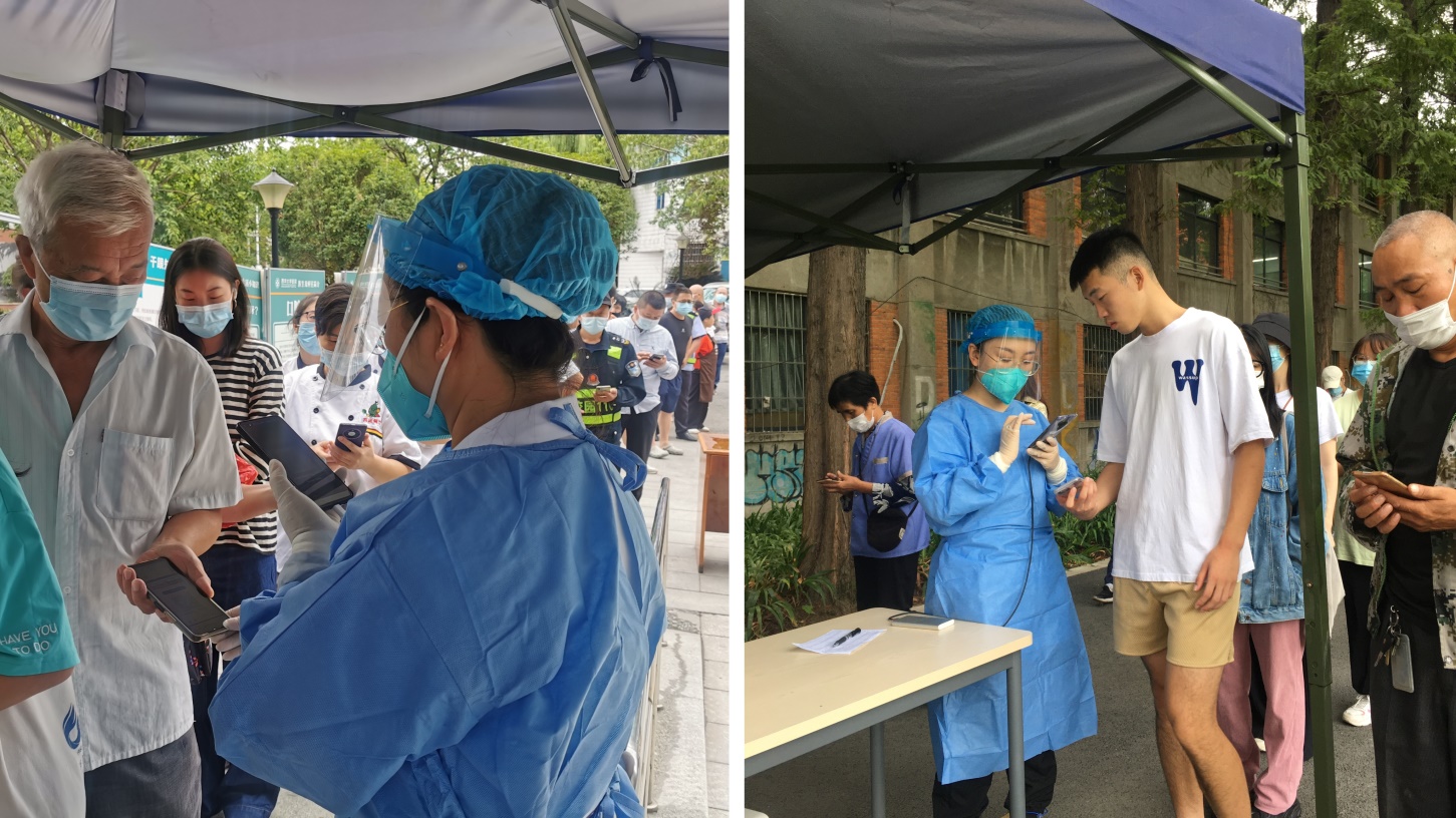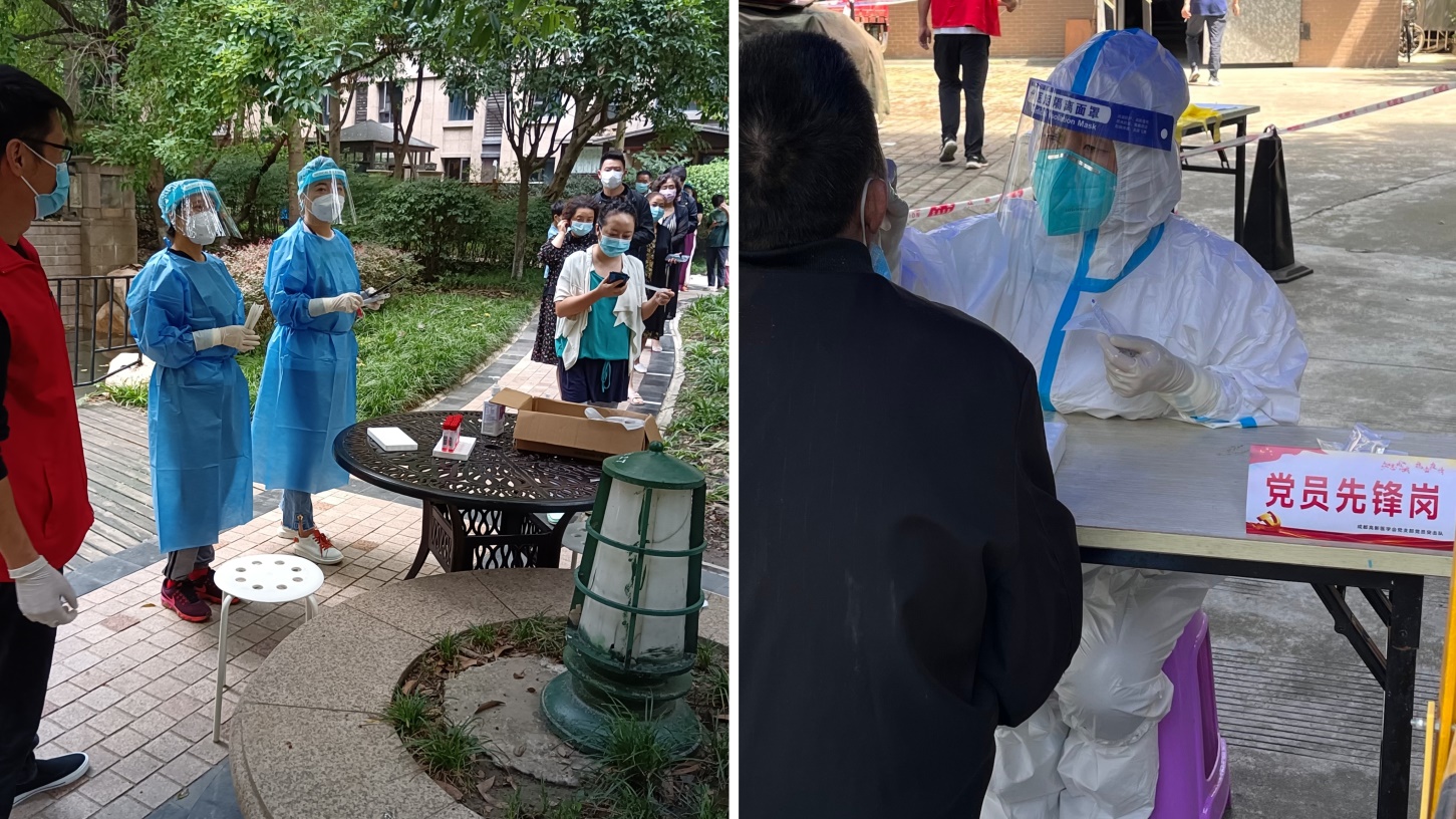 内科彭燕医生在青羊区清江社区参加核酸检测 骨伤科青年党员薛京蓉在高新区参加核酸检测