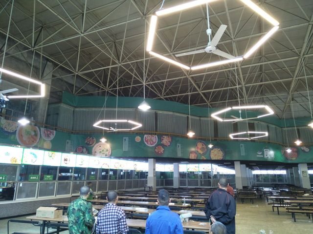 为更好的服务于师生,10月4日,水电管理服务中心对学校第二食堂底楼进行了新增荧光灯正六边形灯具装饰改造工程,解决了就餐区光线不明亮的问题。本次改造施工难度大,任务重,操作高度高。中心工作人员多次实地考察,科学规划灯具安装位置,因地制宜、合理布局。改造期间员工细化分工,秉承不怕苦不怕累的精神,加班加点、相互配合、以完成食堂灯具为目前第一任务,确保以高质量的、准时的完成改造。