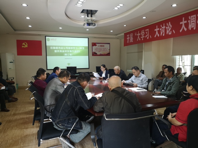 国家市场监督管理总局新修订的《餐饮服务食品安全操作规范》于10月1日起正式实施,该规范对餐饮服务食品安全工作提出了新的要求。为了准确把握该规范的主要内容和精神实质,进一步强化食堂食品卫生安全管理,履行食品安全主体责任,提升食品安全管理能力,保证餐饮食品安全,规范食堂后场操作标准。10月10日下午,后勤总公司饮食服务中心组织员工对《餐饮服务食品安全操作规范》进行了学习讨论。总公司副总经理刘俊、饮食中心正副经理、学生食堂正副管理员、班组长、安全员、中快餐饮及熙园餐厅相关人员、食堂承包商户、天天净公司代表共计33人参与学习。首席食品安全官文晓丽老师对《餐饮服务食品安全操作规范》修订版进行了解读。
