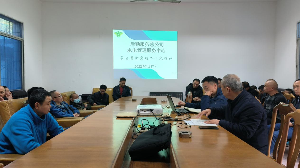11月17日,水电管理服务中心在高压配电站会议室召开全体员工会议传达学习宣传贯彻党的二十大精神,会议由中心副主任、后勤服务总公司校园服务及能源管理中心党支部记书记卢路主持。