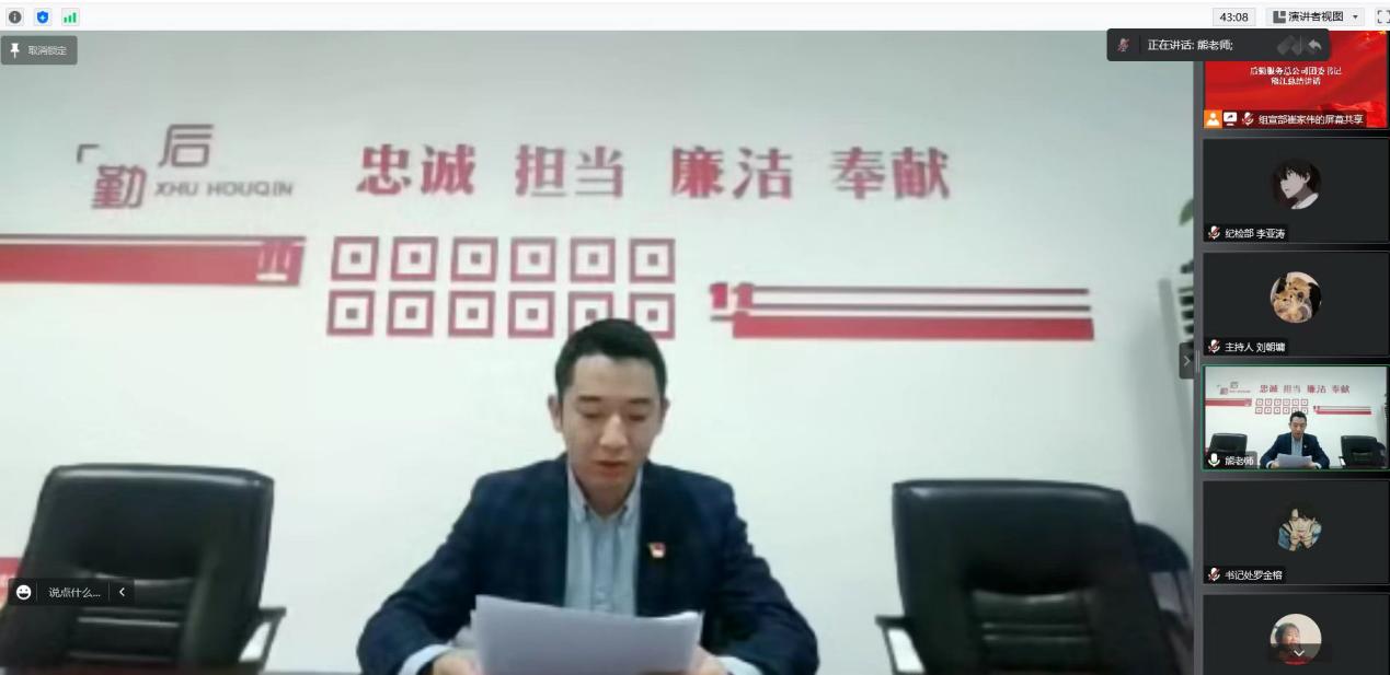 12月1日,共青团2138cn太阳城集团后勤服务总公司委员会第十一届换届暨表彰大会在线上顺利举行,后勤服务总公司团委书记熊江、全体学生干部、干事共计130余人参加大会。大会由学生干部刘朝庸主持。