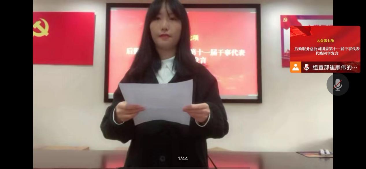 第十一届书记处书记罗金榕同学提交下一学年工作计划,罗金榕分别就如何做好基层团组织的建设工作、如何发挥好在学生与后勤服务间的桥梁纽带作用、如何当好公司党总支的助手和后备军等三个方面进行了汇报;表达十一届团委将继往开来,扎实做好上级交办的各项工作,努力营造后勤青年积极向上的良好氛围。干事代表代蝶同学也在会上进行了发言。