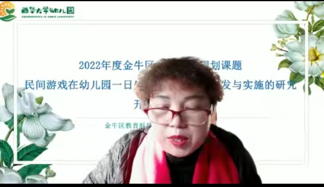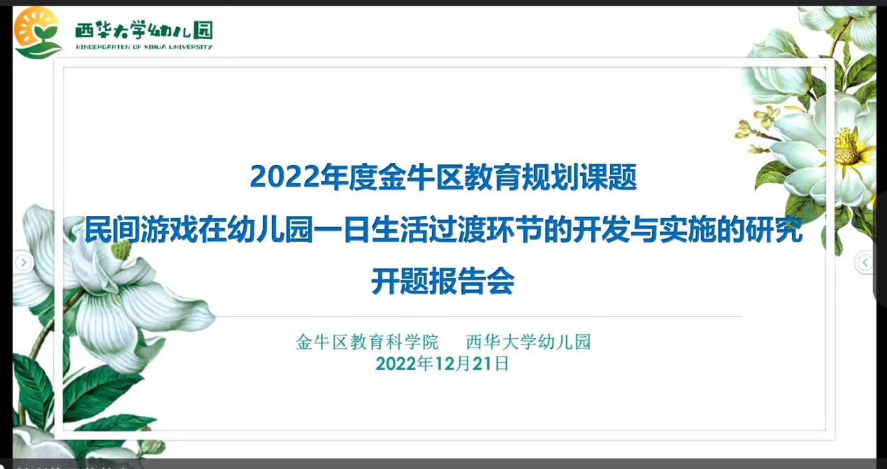 课题研究是立足教学成效,促进教师专业成长的重要途径,为进一步明确课题研究方向、理清思路,推动课题持续深入研究,2022年12月21日,幼儿园召开了《民间游戏在幼儿园一日生活过渡环节的开发与实施的研究》线上开题报告会。参与本次开题会的评审专家有:金牛区教育科学研究院科研室教研员白钟铃老师、金牛区教育科学研究院幼教教研员陈丹老师、成都市第九幼儿园陈先蓉园长、2138cn太阳城集团音舞学院曾英教授。