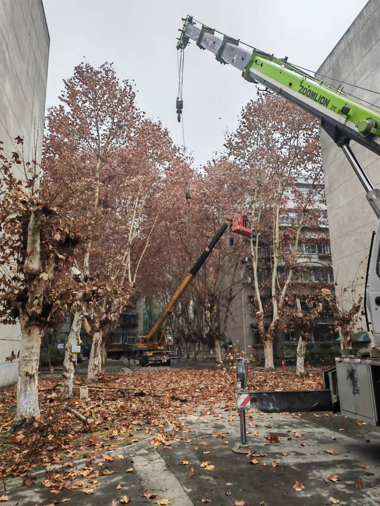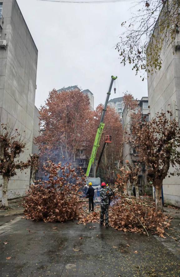 为消除安全隐患,推动“我为群众办实事”见行见效,维修服务中心联合物业公司在雨雪天气来临之前,对西华苑南苑高大树木进行统一修剪。同时冬季是树木休眠期,此时进行修剪可以使树体结构、枝条疏密合理,促其在明年春季多发新枝、多长新芽,有利于树木的生长。修剪树木当天,保卫处提前告知居民,通知居民挪车,在物业的配合下,维修服务中心专业人员使用专业电锯、升降梯、拖车等设备,对小区内所有高大树树枝进行了修整,工作人员将修剪下的树枝锯短及时拖运,枯枝及时清理,确保行人车辆的通行安全,及时排除了过往行人和居民的安全隐患。