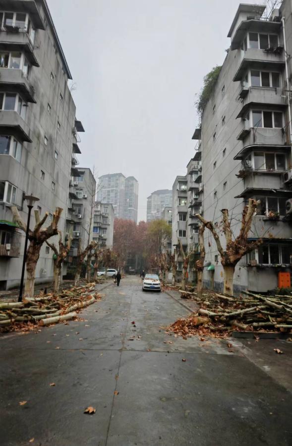 西华苑南苑是一个已有几十年历史的老小区,小区内一棵棵大树的“岁数”也同样不小。让居民担心的是,树木虽说长得又高又大,但已有不少枯枝,并且都在较高的树冠处。这些开裂干枯的树杈,在冬季刮风时极易掉落砸到人。有些树木高大茂密,遮挡居民阳光的同时大量落叶阻塞楼房天沟引起漏水;茂密的树冠与各种电线交织在一起,雨雪天气存在严重安全隐患;病虫害导致枯枝死枝过多,掉落的树枝影响居民出行。