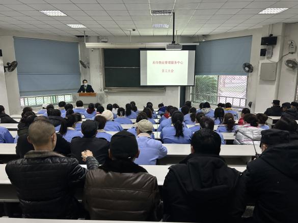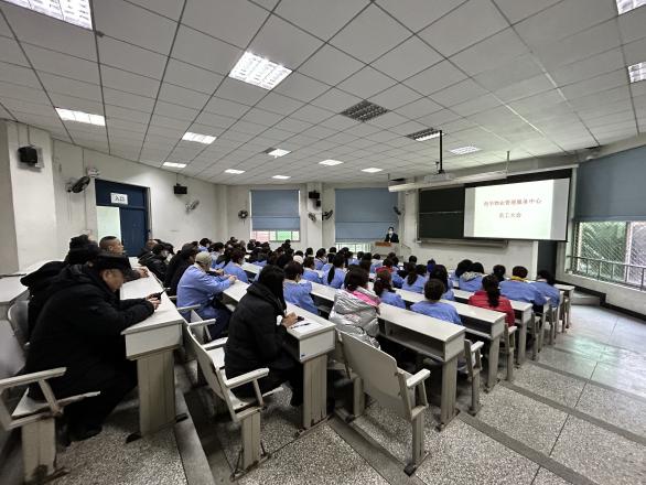 2月14日,西华物业服务中心在4A-101召开了寒假工作总结暨新学期工作布置会,中心全体员工共计104人参加了会议,会议由中心主任金仁友主持。