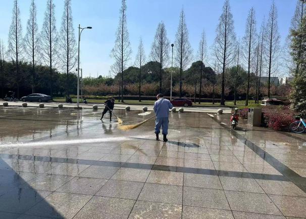保洁方面,物业安排保洁人员提前对本次活动所在楼宇及周边加强保洁力度,对楼宇环境卫生进行彻底清洁,例如周边地面的冲洗、蜘蛛人对高空楼宇玻璃门窗的清洁等。活动当天,物业增加保洁频次,同时加强巡查,确保室内外环境卫生整洁!