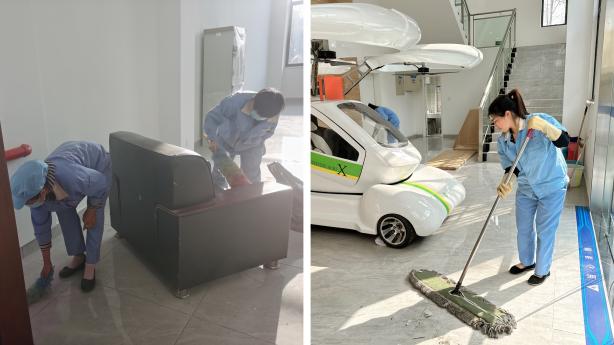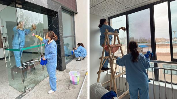 员工正在开荒保洁工作
