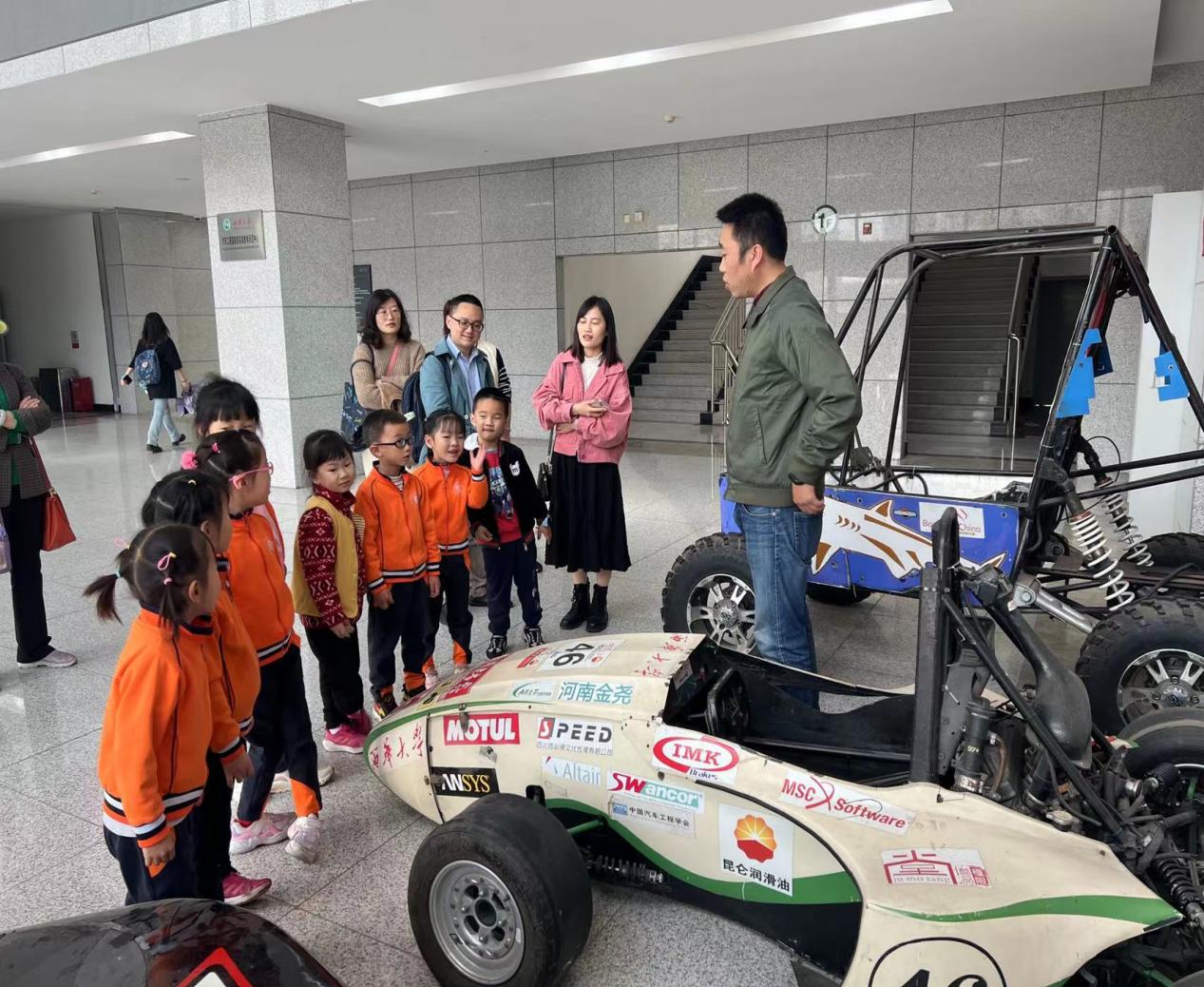 在汽车学院的老师们和志愿者哥哥姐姐们的热情接待下,本次活动圆满结束。小朋友们通过参观和体验的方式,积极发现和探索赛车的“秘密”,对赛车有了直观深入的了解,同时,也激发了幼儿主动观察和探究的兴趣,丰富了幼儿的生活经验。(曾吕琼撰稿)
