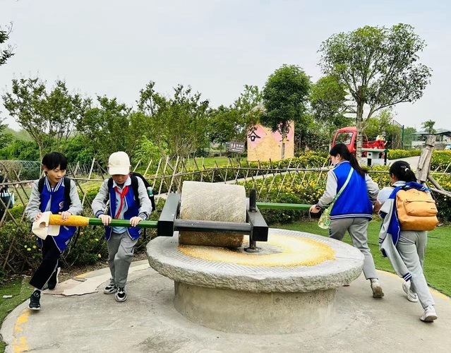 活动期间,各班学生在领队老师的指导下,亲身体验了石磨磨豆浆、石碾磨面粉、舂玉米粉、投喂小动物、抓泥鳅等农事活动,孩子们看到自己的劳动成果产出,兴奋的心情溢于言表。此外孩子们还体验了趣味攀爬、翻越轮胎山、走网桥、趣味秋千等探索类活动,在活动中孩子们学会了对各项活动做出安全性判断,并提高了通过劳动及体育锻炼来强身健体的思想意识。