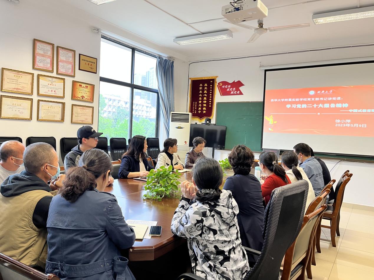 为深入开展主题教育,切实把附属实验学校教师的思想和行动统一到党的二十大精神上来,统一到推进附属实验学校高质量办学上来,2023年5月9 日、5月16日下午,附属实验学校党支部开展了两场党课教育。