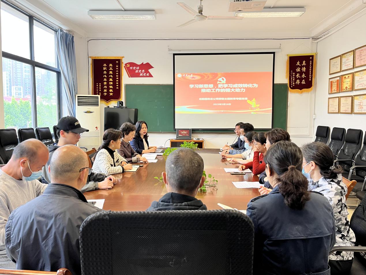 5月16日下午,后勤服务总公司党总支委员黄敏副总经理给全体党员上了一堂主题为《学习新思想,把学习成效转化为推动工作的强大动力》的党课,全体党员要深刻领会党的二十大重要思想、重要观点、重大战略、重大举措,特别是深刻领会党的二十大主题;深刻领会新时代10年伟大变革的里程碑意义,中国式现代化的中国特色和本质要求;深刻领会全面建设社会主义现代化国家的系统部署,全面把握抓关键、补短板、防风险的战略考量;深刻领会坚持党的全面领导和全面从严治党的新形势新要求,以及应对风高浪急甚至惊涛骇浪重大考验的清醒坚定,坚决把思 想和行动统一到党中央大政方针和决策部署上来。 要深刻领悟“两个确立”的决定性意义,更加坚决做到“两个维护”;要坚定不移加强全面从严治党,要深入思考党的二十大精神与本职工作的内在联系,理论联系实际,把学习成效转化为推动工作的强大动力。