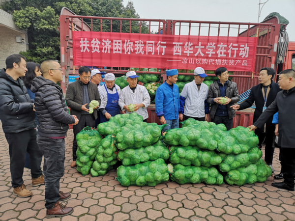 首批“以购代捐”物资共有大凉山莲花白2030斤、黄心土豆4280斤、红花椒201斤,价值共计35000余元,之后还将有更多的大凉山特色农副产品陆续运至我校。在今后的扶贫工作中,后勤服务总公司将继续在学校的统一领导下,坚持在思想上、行动上与中央和省委各项决策部署保持一致,牢记使命强化担当,扎实推进脱贫攻坚工作。