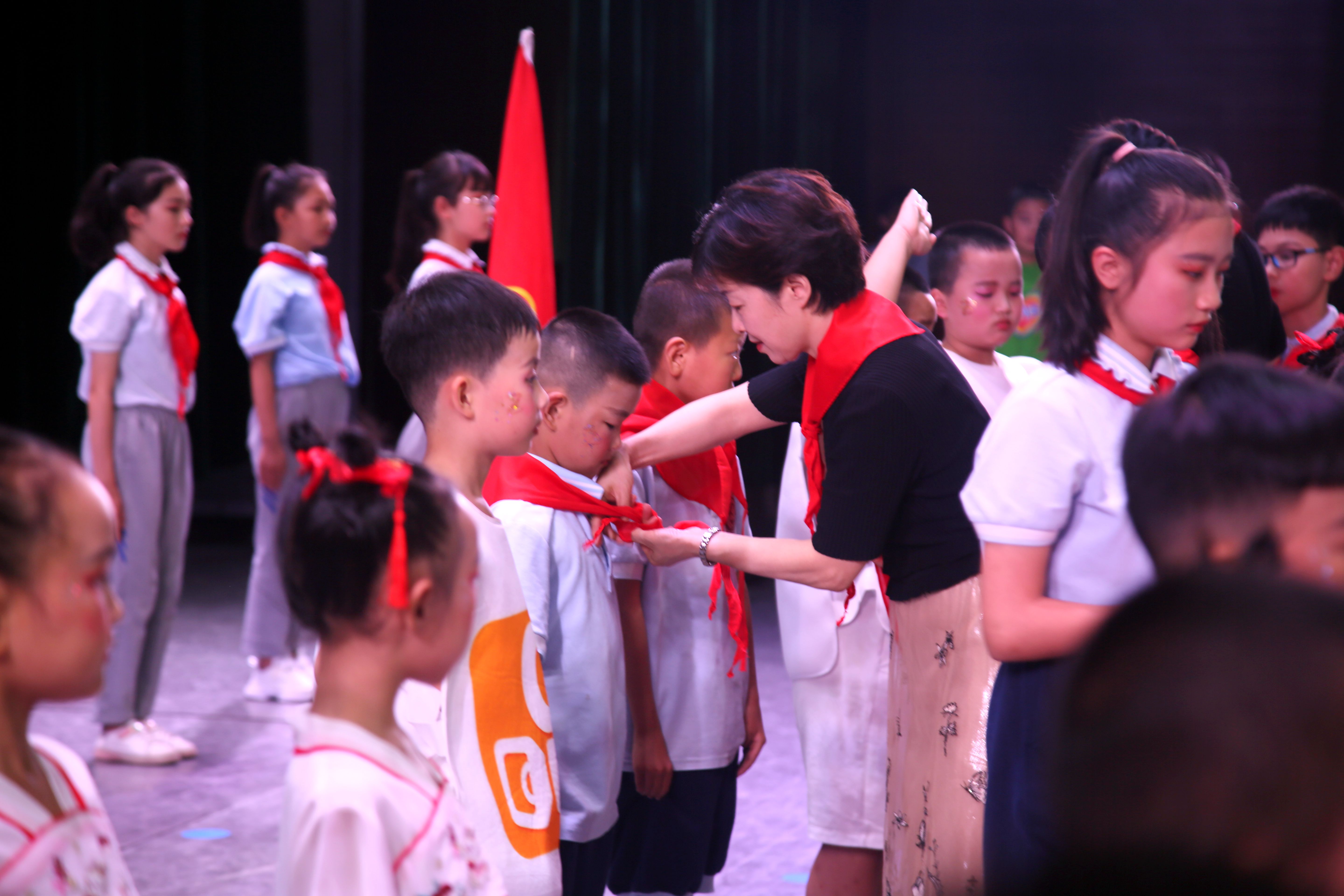 新队员员授予了红领巾,新队员们在队旗下进行了庄严宣誓。