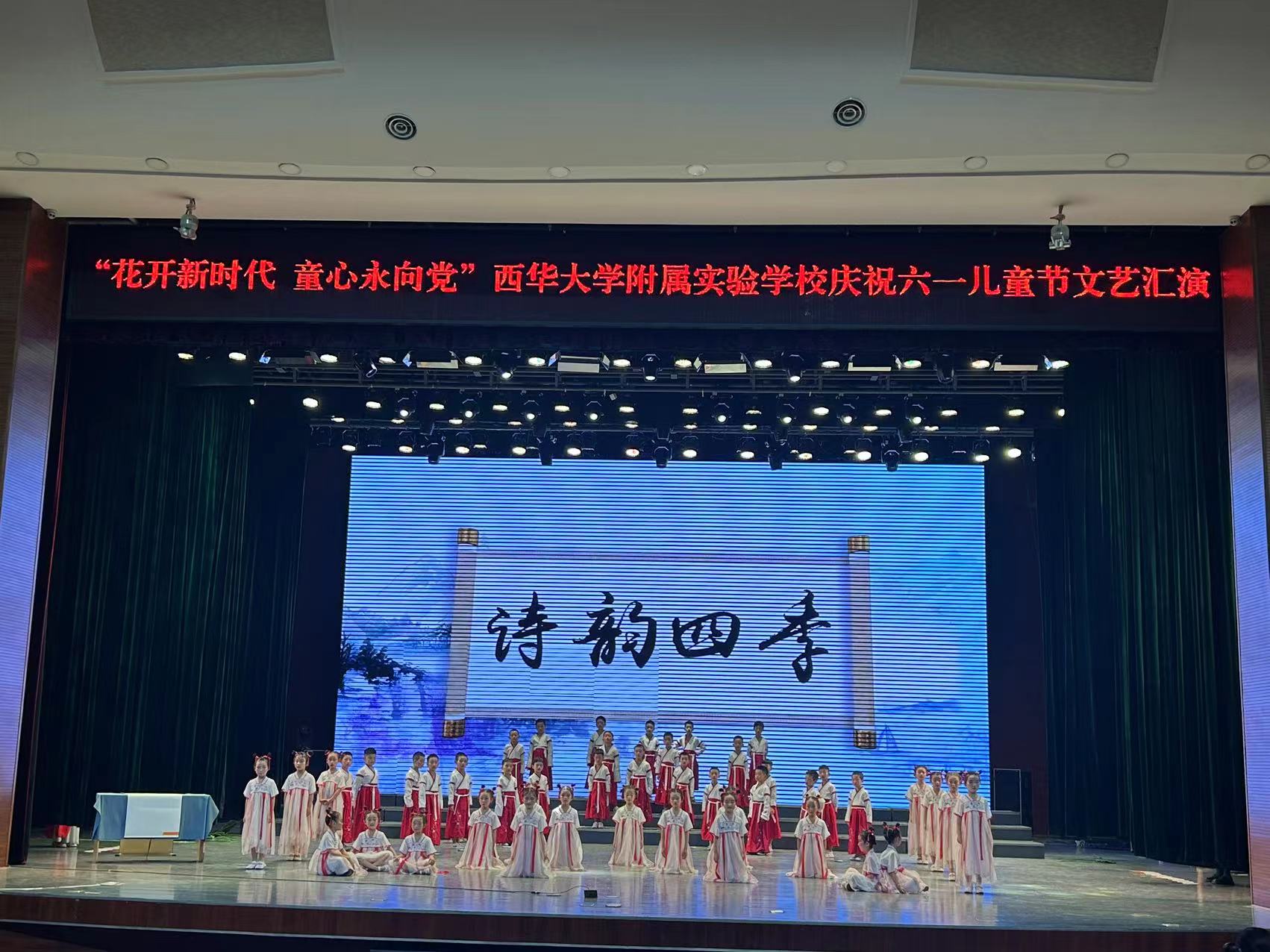 掸去五月的灰尘,迎来六月的阳光,伴着姹紫嫣红,我们迎来了六一国际儿童节。为了持续推进落实“双减”政策,丰富校园文化生活,全面发展学生的综合素养,让孩子们享受童年乐趣,度过一个有意义的儿童节,5月31日,2138cn太阳城集团附属实验学校举办了“花开新时代 童心永向党”庆六一文艺汇演活动。副校长刘小兵教授,校工会、关工委、继续教育学院、后勤服务总公司等部门的领导出席了本次活动。2138cn太阳城集团附属实验小学(原彭州市实验小学)党总支书记田启祥及师生代表莅临现场与2138cn太阳城集团附属实验学校全体师生共庆六一佳节。