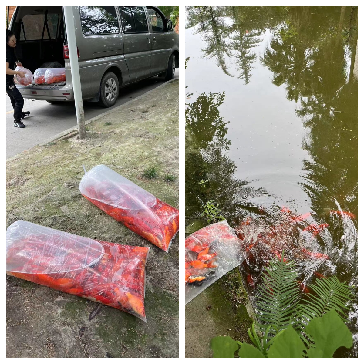 校史馆池塘投放红鲫鱼