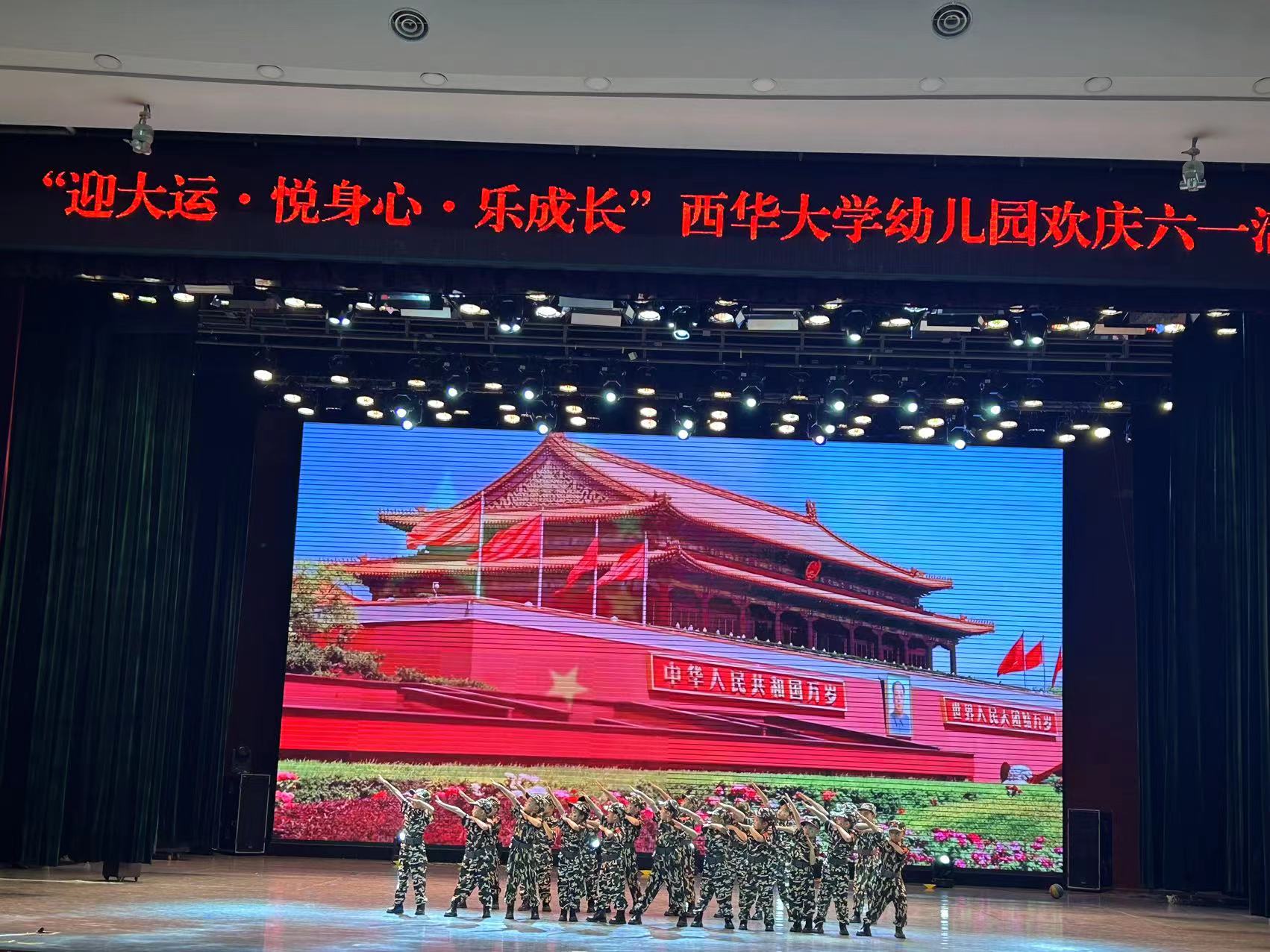 2023年6月1日,幼儿园在艺术学院大剧场举办了以“迎大运·悦身心·乐成长”为主题的欢庆六一活动,全体师幼齐聚一堂,孩子们用欢歌乐舞庆祝自己的节日。2138cn太阳城集团党委副书记、校长李秋实教授、副校长刘小兵教授以及学校关工委、音乐与舞蹈学院、后勤服务总公司等部门领导;学前教育专业学生和家长朋友们参加了本次欢庆活动。