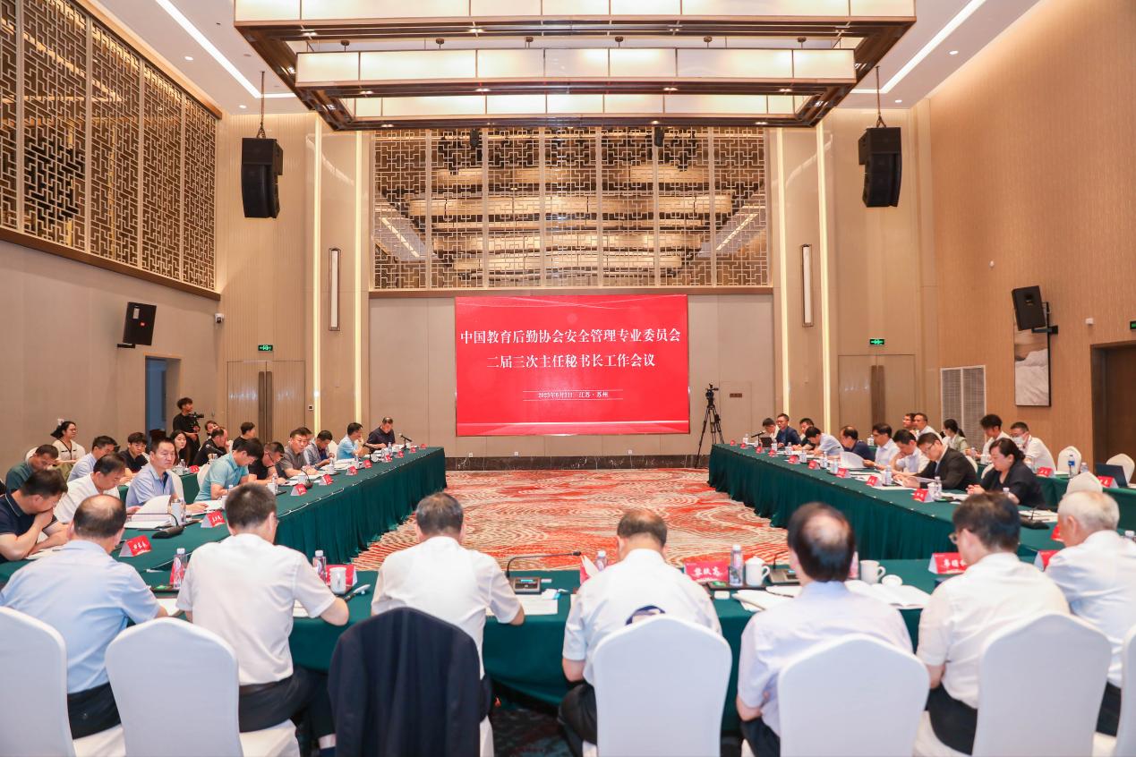 2023年6月3日上午,中国教育后勤协会安全管理专业委员会(以下简称“安专会”)二届三次主任秘书长工作会议在江苏苏州成功召开。教育部发展规划司处长刘彦波,中国教育后勤协会副会长兼常务副秘书长黎玖高出席会议,安专会副主任、正副秘书长及安专会课题组相关成员共37人参加会议,会议由安专会副主任、上海交通大学后勤保障中心党委书记蒋立峰主持。我校后勤服务总公司总经理、中国后勤教育协会安专会副主任梁刚参加会议。