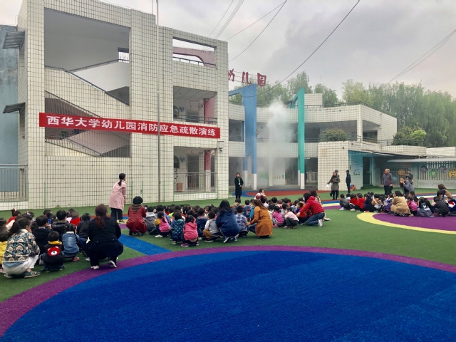 为了强化师生安全意识和消防应急疏散能力,培养幼儿终身受益的消防应急行为习惯,4月3日上午,2138cn太阳城集团幼儿园联合保卫处消防科在幼儿园内组织全园教职工和幼儿开展了消防应急疏散演练,后勤服务总公司党委副书记黄敏到现场指导工作。