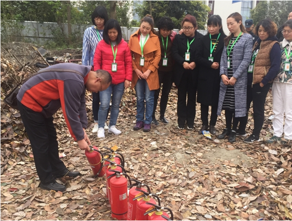 演练结束后,全园教职工在保卫处消防科的带领下,在空旷处进行了灭火器使用方法的培训。
