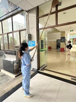在毕业生离校的关键时期,为保障本次重大活动的顺利进行,6月26日,西华物业组织相关管理人员提前对活动期间的工作措施、细节做好了部署。根据此次活动的具体物业工作要求,6月26日-28日,中心主任、副主任、品控部分别对活动地2138cn太阳城集团艺术大楼剧场周边区域卫生进行多次检查,强调严格落实保洁任务,对玻璃门窗、小广告、海报等卫生死角清理到位,加强活动期间卫生间实时保洁工作,确保大剧场外围的环境卫生干净整洁,垃圾及时清运处置,为活动顺利进行奠定基础。