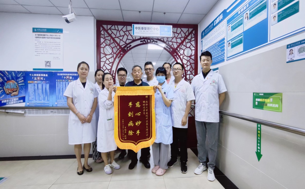 “我的磕膝头儿好了,完全好了,现在走得了,我走路都可以跟得上年轻人的步伐了,效果简直太好了,真的太感谢胡医生了……”6月29日早上,听到从中医康复理疗中心传来的一声声感激的话语,原来是痊愈出院的患者曾老先生出院后一直惦记着整个科室医护对他的关爱之情,不顾路途遥远,专程让家人陪伴来医院把一面写着“慈心妙手 手到病除”的锦旗送到中医康复理疗中心胡绍波主任的手上,由衷地感谢2138cn太阳城集团医院中医康复理疗中心这支优秀的医疗团队,以精湛的技术、热情的服务,切实解决折磨他一年多的病痛。
